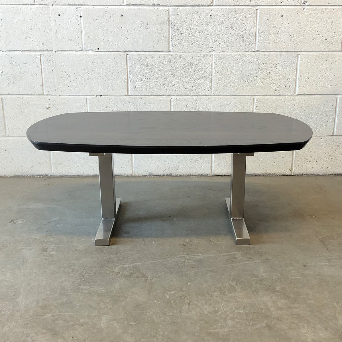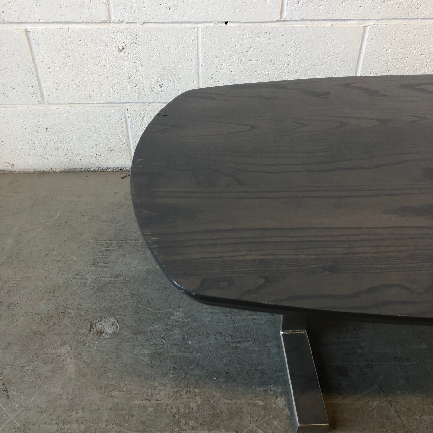 Solid ash top with powder-coated steel base.
