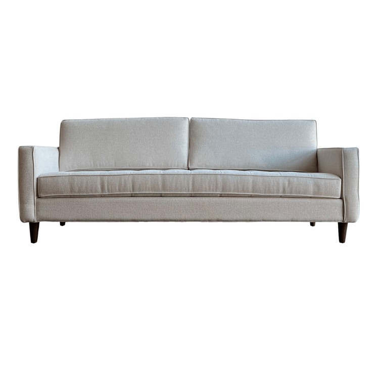 The Wesley Sofa has reversible loose back cushions and a button-tufted loose seat cushion. This Canadian-made sofa has unique cone-designed removable legs.